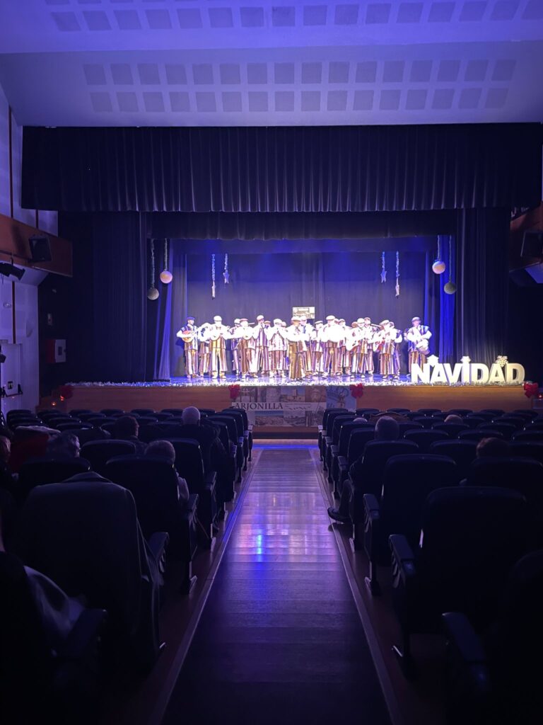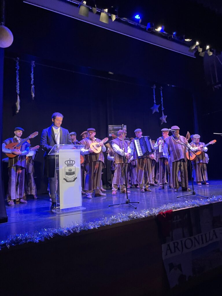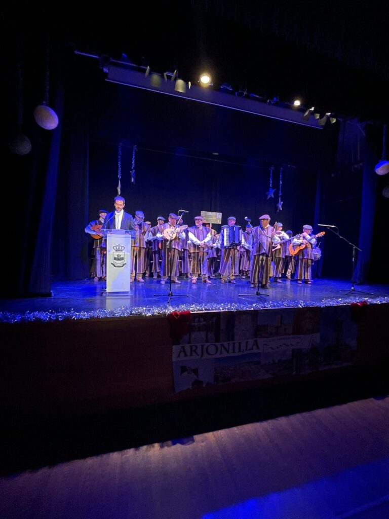 Tras el pasacalles musical, la Asociación Cultural Zambomba Los Segaores de Luque (Córdoba) ofrecieron un concierto de villancicos en el Teatro Municipal El Trovador. Acto que contó con la presencia y presentación del Concejal delegado de cultura y turismo del Ayto. de Arjonilla, D. Antonio Pérez León.