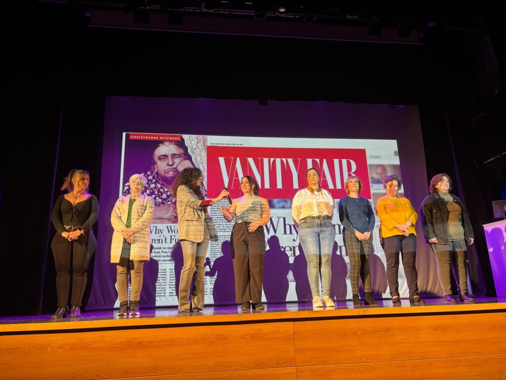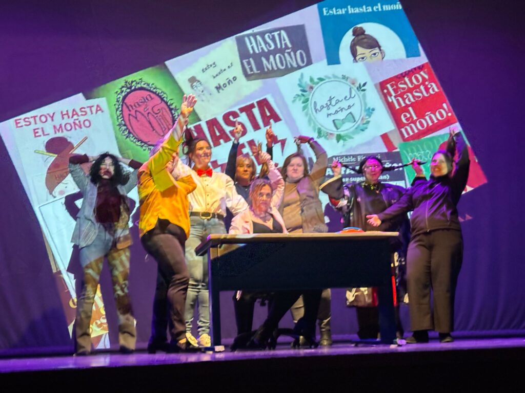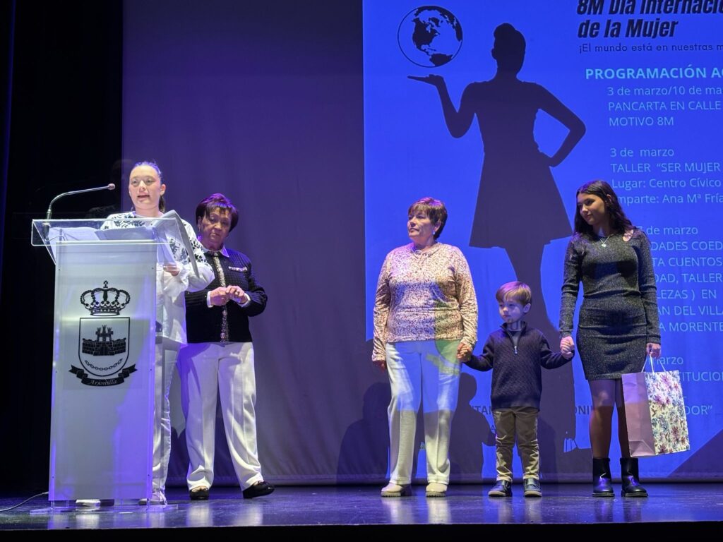IGUALDAD. El pasado viernes 7 de marzo tuvo lugar en el Teatro Municipal » El Trovador» el Acto Institucional con motivo de la celebración del día 8 de marzo «Día Internacional de la Mujer». Durante el acto ,se leyó el manifiesto por parte de D. María Carmen Peña Cañones (Concejala de Educación,Infancia,Salud y Agricultura del Ayuntamiento de Arjonilla), a continuación se representó un micro-teatro «Hasta el moño» ,en el que participaron alumnas del Aula Municipal de teatro (Tere Hierro, Fefi Ruz, Gloria Martos, Loren Ortega, Isabel Segado, Paqui Ruz, Carmen León, Nerea Garciolo), la dirección ha sido una vez más de Jacaranda Coeduca (Nerea Garciolo y Raúl Muñoz). Tras la representación ,llegamos al momento más emotivo,la entrega del Premio Doña Elvira otorgado a Cati y Paqui Segado Jándula. Acompañadas de sus familiares,amigos,trabajadores,recibieron numerosos obsequios y sorpresas ,entre ellas la lectura por parte de Natalia ,nieta de Cati, proyección de video homenaje ,y finalmente la entrega del Premio Doña Elvira por parte de D.Luis Miguel Carmona Maroto (Alcalde-Presidente del Ayuntamiento de Arjonilla) y D. Antonio Pérez León (Concejal de Igualdad). Enhorabuena Cati y Paqui por vuestro reconocimiento a toda una vida entregadas a vuestro trabajo y familia.